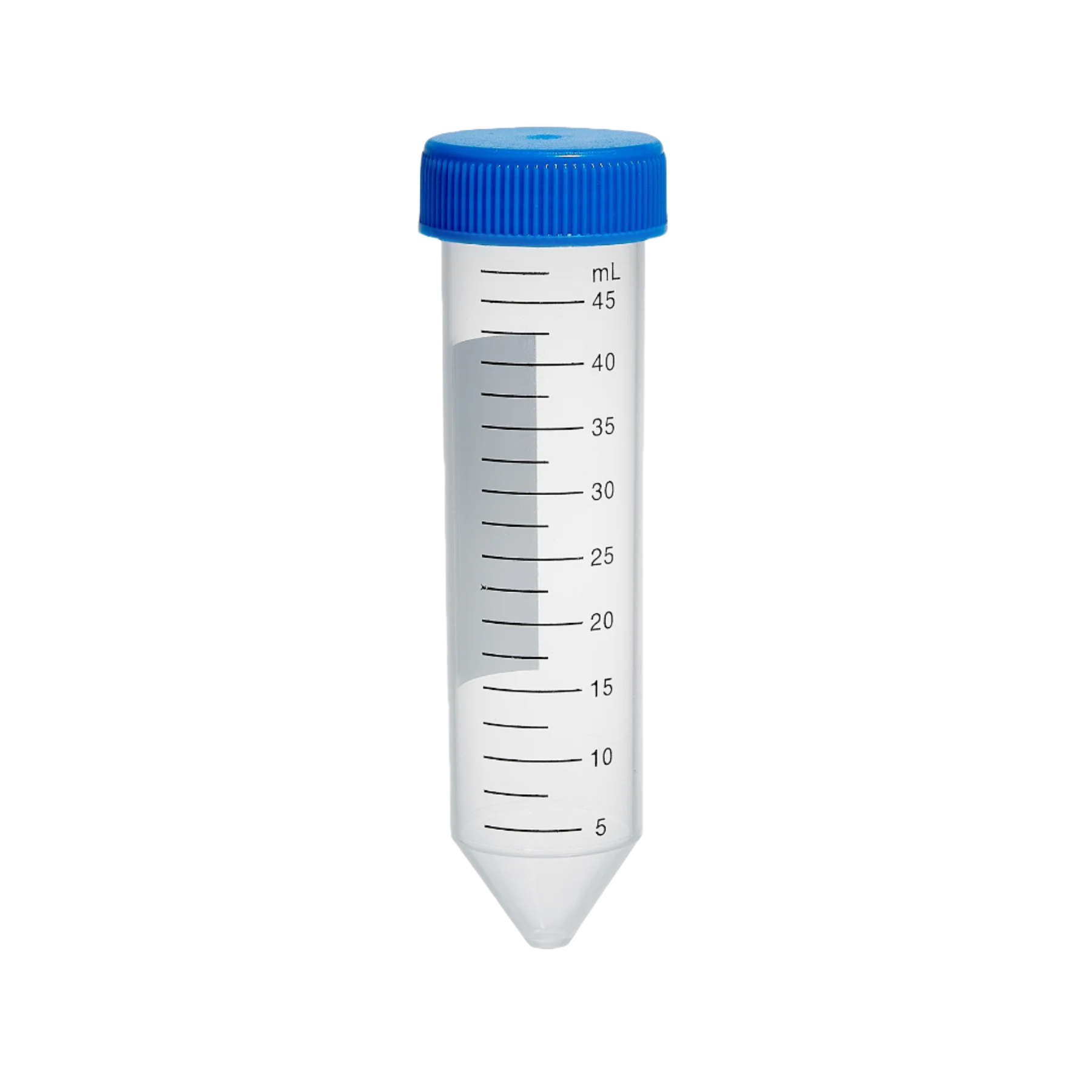 Conical centrifuge tubes made of premium polypropylene for clarity and centrifugal strength. Tubes and caps may be frozen at temperatures as low as -86˚C. The maximum centrifugal force is 15,000xg*. Caps have a flat top surface for easy marking and labeling.